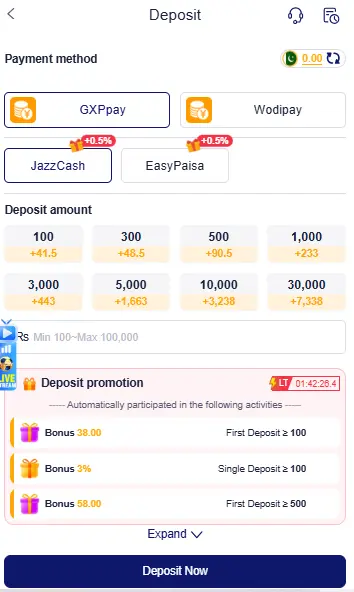 QPBET game includes a balance add option Easypaisa or Jazzcash. Users can see available deposit methods on the deposit page. Instructions are shown on screen.